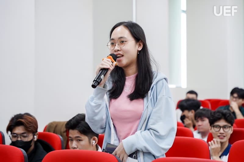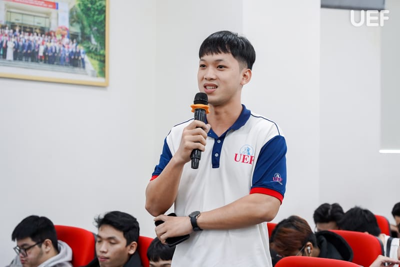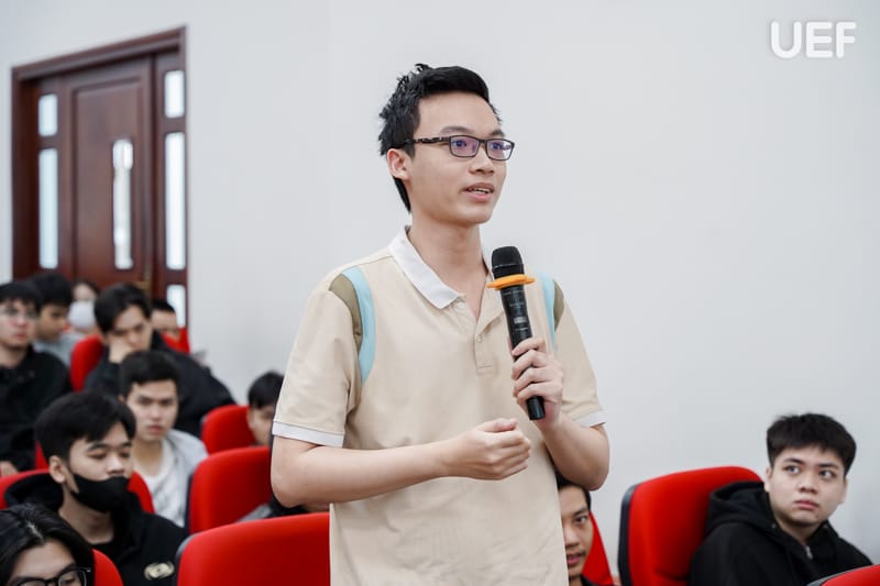 Phần hỏi - đáp diễn ra sôi nổi khi sinh viên mạnh dạn đặt câu hỏi xoay quanh lựa chọn nghề nghiệp trong ngành IT như Developer, BA, Tester, PO, PM, AI, Data Analyst, Data Scientist,… cũng như các kỹ năng mềm cần thiết khi bước vào giai đoạn thực tập. Những chia sẻ chân thực từ diễn giả giúp sinh viên hiểu rõ hơn con đường phát triển sau khi “code xong”, không chỉ dừng lại ở kỹ năng kỹ thuật mà còn là tư duy, thái độ và khả năng quản trị bản thân.