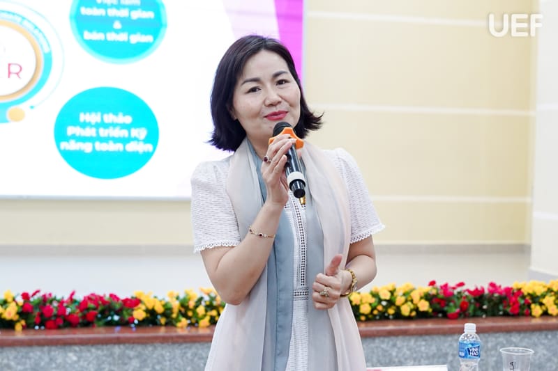 Diễn giả chia sẻ với sinh viên cách duy trì động lực, cân bằng giữa công việc và cuộc sống