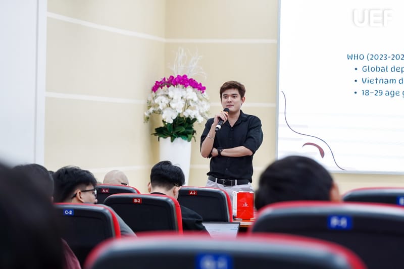 Mở đầu chương trình, diễn giả mang đến góc nhìn mới mẻ khi ví cuộc sống và sự nghiệp như một “dự án”, trong đó mỗi sinh viên là người quản lý chính hành trình của mình. Từ khái niệm dự án, anh dẫn dắt sinh viên nhìn nhận rõ hơn về mục tiêu, thời hạn, kết quả đầu ra và vai trò cá nhân trong quá trình học tập, làm việc.