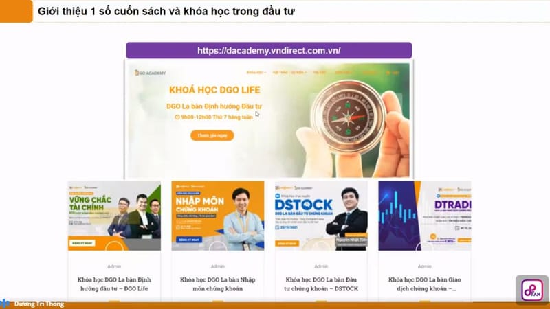 Về phía khách mời có bà Trương Thị Thu Huyền đến từ Công ty cổ phần chứng khoản VNDirect, diễn giả chia sẻ là Ông Đỗ Ngọc Quỳnh, Phó Chủ tịch Hội đồng quản trị Công ty cổ phần chứng khoán VNDirect và ông Dương Trí Thông, Phó Giám đốc chi nhánh, Công ty cổ phần chứng khoán VNDirect.