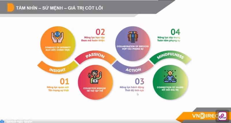 Ở phần thứ 2 của chương trình, UEFers được nghe những chia sẻ của ông Đỗ Ngọc Quỳnh về tầm nhìn, sứ mệnh, giá trị cốt lõi của VNDirect và cơ hội nghề nghiệp trong lĩnh vực. Theo ông, VNDirect xây dựng đội ngũ nhân sự theo 4 năng lực chủ chốt gồm: quan sát, học tập, hành động và tập trung. Từ đó, tạo ra đạo đức chính trực, trí tuệ tập thể, hợp tác phụng sự, kết nối giá trị cho khách hàng, cộng đồng, xã hội. Trong tuyển dụng, VNDirect cũng theo định hướng này, chú trọng tuyển dụng cá nhân phù hợp với từng tính chất, đặc điểm của công việc đang cần.