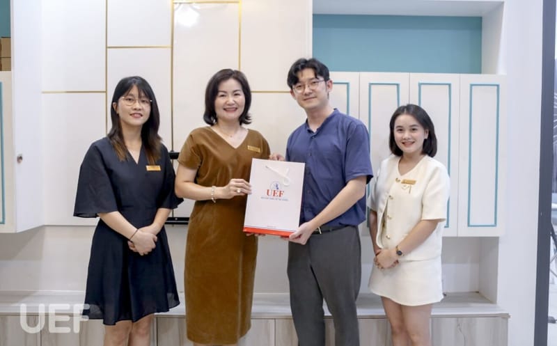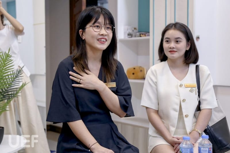 Đoàn UEF đến thăm doanh nghiệp có ThS. Nguyễn Thị Kim Loan - Phó Giám đốc Trung tâm Hợp tác doanh nghiệp, ThS. Hà Trúc Giang - Giảng viên Khoa Ngôn ngữ và Văn hóa quốc tế