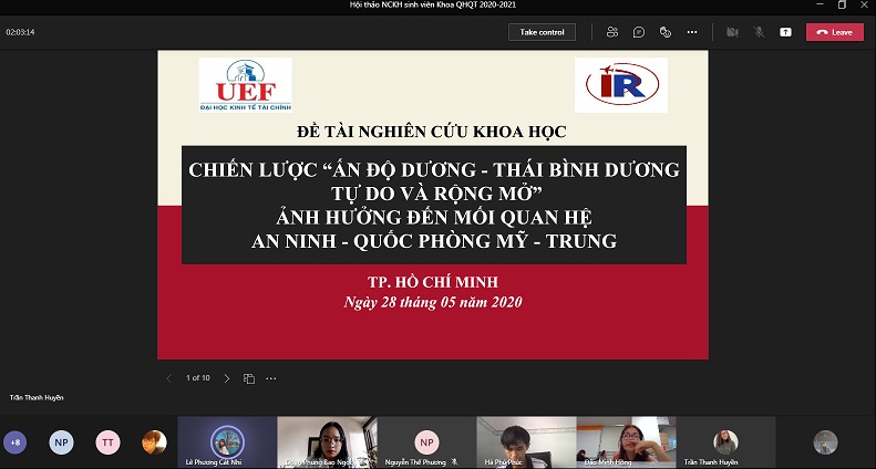 Buổi nghiệm thu NCKH sinh viên online khoa Quan hệ quốc tế diễn ra vào 28/5