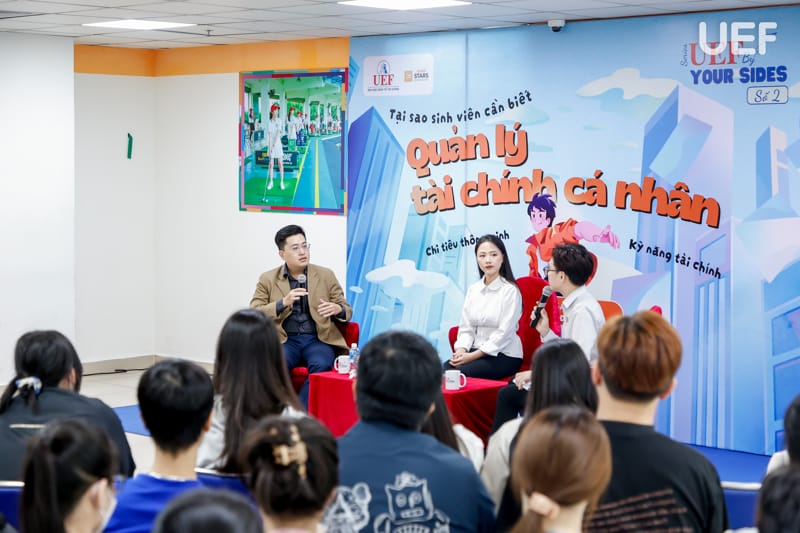 Nhằm trang bị cho sinh viên những kỹ năng quan trọng trong cuộc sống, đặc biệt là khả năng kiểm soát tài chính một cách thông minh và hiệu quả, sáng ngày 25/3, chuỗi talkshow "UEF by Your Sides: Từ lý thuyết đến thực tiễn" đã trở lại với số thứ hai đầy thiết thực, mang chủ đề "Tại sao sinh viên cần học quản lý tài chính cá nhân?". Chương trình do Trung tâm Tham vấn tâm lý và Hỗ trợ pháp luật tổ chức, không chỉ tạo ra một không gian trao đổi kiến thức bổ ích mà còn giúp UEFers tiếp cận những kinh nghiệm thực tiễn từ giảng viên và chính những người bạn đồng trang lứa.