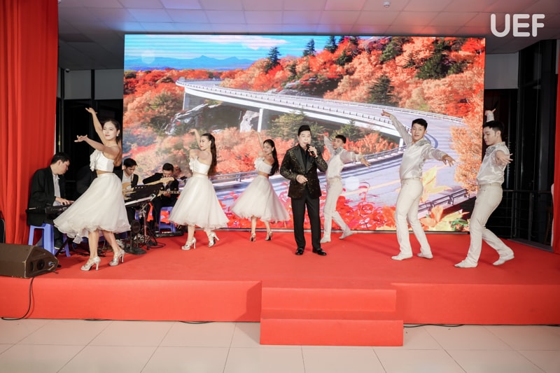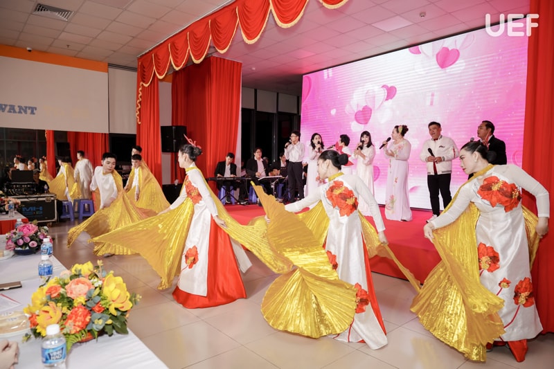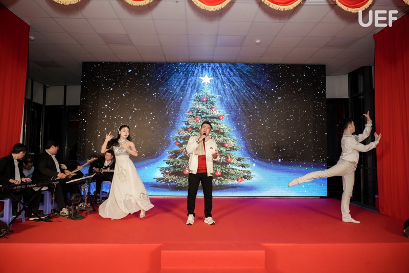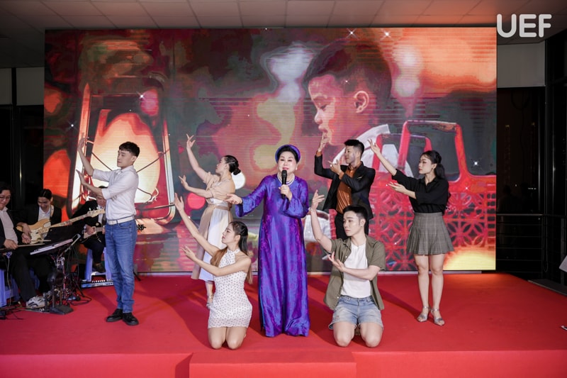 Bên cạnh đó, các doanh nhân cũng bước lên sân khấu bằng tất cả sự chân tình. Trong đó, một số “người thầy doanh nhân” cũng đang đứng lớp giảng dạy sinh viên UEF. Đặc biệt hơn, giảng viên, sinh viên Nhà trường cũng mang đến những tiết mục biểu diễn cảm xúc, góp phần tạo nên thành công của một chương trình đầy nhân văn.