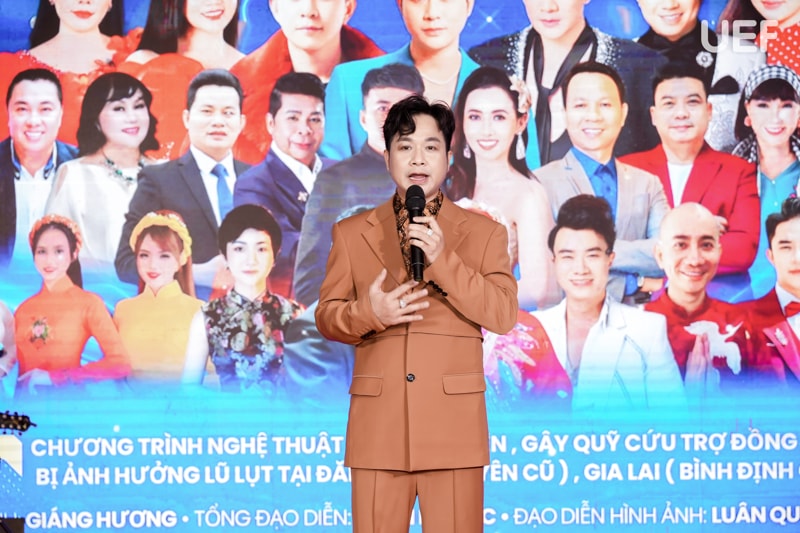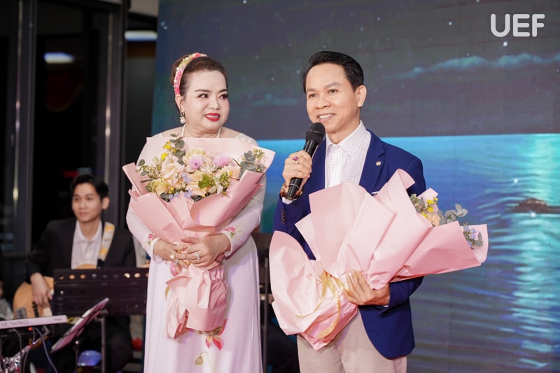 Phát biểu mở đầu đêm nhạc, TS. Nhan Cẩm Trí đại diện Ban tổ chức nhấn mạnh rằng đây không chỉ là sự kiện nghệ thuật mà còn là lời nhắc nhở ý nghĩa về trách nhiệm cộng đồng, đặc biệt với đồng bào miền Trung đang chịu ảnh hưởng nặng nề bởi thiên tai. Thầy gửi lời tri ân đến các nghệ sĩ đã cống hiến vô điều kiện, cảm ơn sự đồng hành của các doanh nhân, doanh nghiệp và đối tác - những minh chứng cho tinh thần trách nhiệm xã hội. Đồng thời, thầy cũng ghi nhận tâm huyết của giảng viên và sinh viên UEF trong công tác chuẩn bị, xem đó là biểu hiện của một môi trường giáo dục toàn diện, tri thức đi đôi với nhân cách.