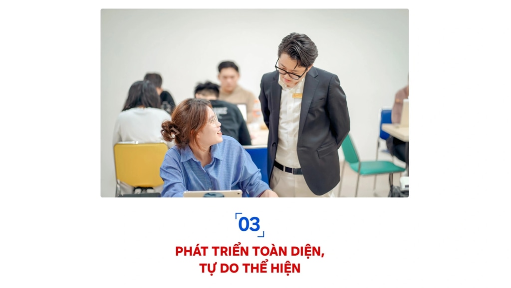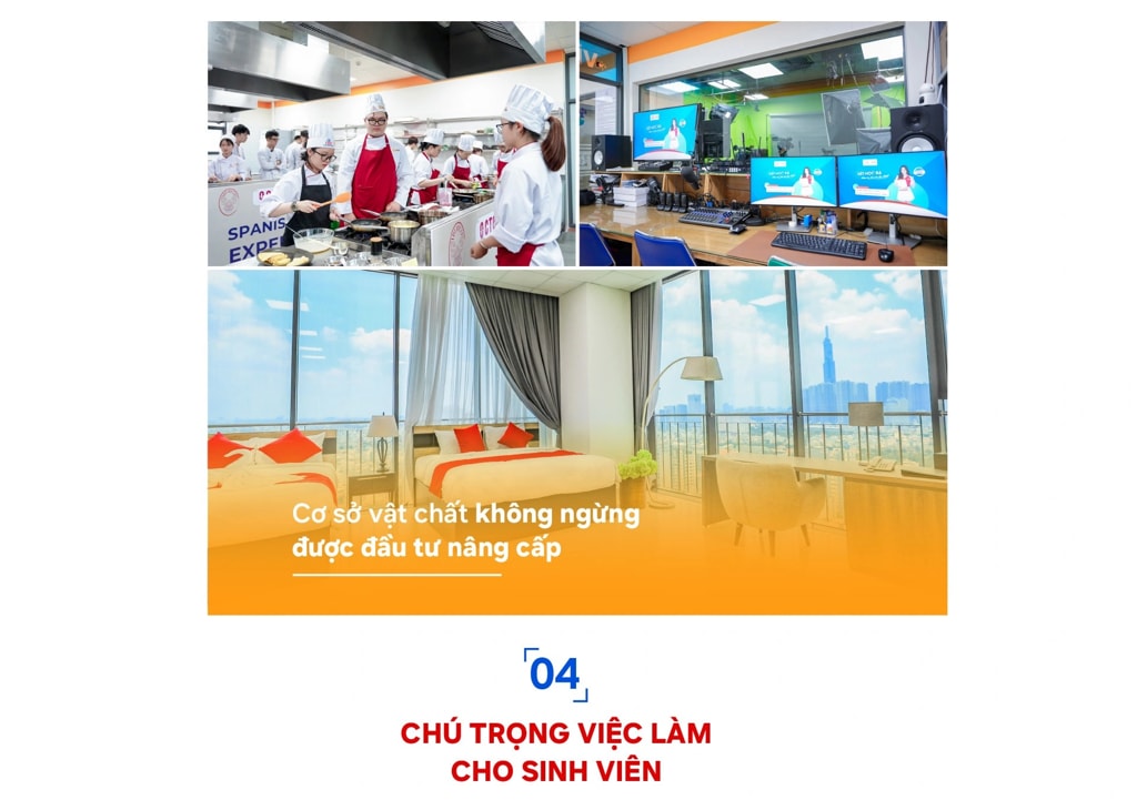 Là môi trường học tập song ngữ, trường luôn tạo điều kiện để sinh viên tiếp xúc và giao lưu với nhiều chuyên gia quốc tế trong các hoạt động ngoại khóa. Từ chia sẻ của các chuyên gia nước ngoài, sinh viên có thể học hỏi cách nhìn nhận vấn đề chuyên nghiệp, bao quát hơn. Những kiến thức và suy nghĩ không còn “gói gọn” với bối cảnh trong nước, mà là phát triển tư duy logic theo góc nhìn và tình hình chung của toàn cầu. ![]() Mặt khác, để sinh viên thoải mái học tập, rèn luyện và nghiên cứu, trường luôn tạo điều kiện thuận lợi về cơ sở vật chất từ phòng học, khu vực ngoại khóa, khu vực thực hành, tập luyện thể chất, văn nghệ,… tất cả được trang bị đầy đủ dụng cụ và thiết bị hiện đại.