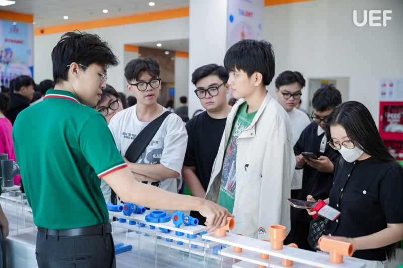 Trong khuôn khổ chương trình, khu vực trải nghiệm sản phẩm của Nhựa Tiền Phong Nam cũng thu hút đông đảo sinh viên tham quan, tìm hiểu, góp phần tăng cường trải nghiệm thực tế và kết nối doanh nghiệp.