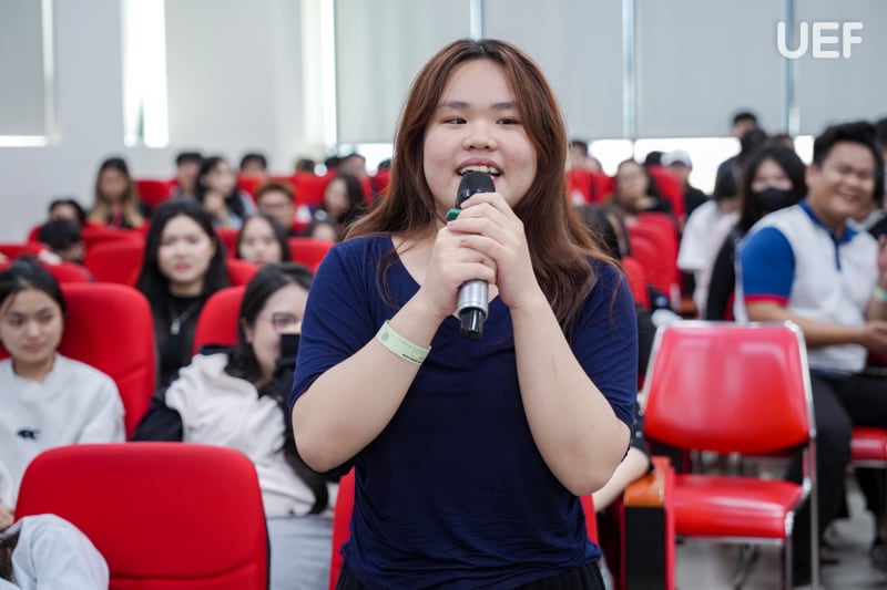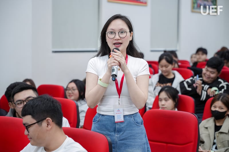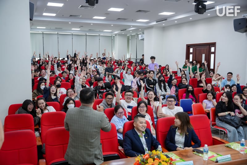 Sinh viên hào hứng tham gia phần Quiz tương tác và trao đổi cùng diễn giả