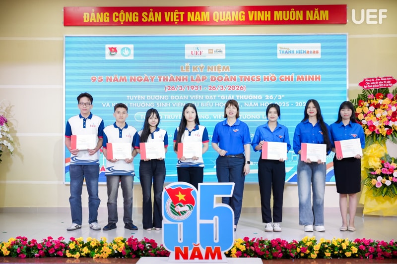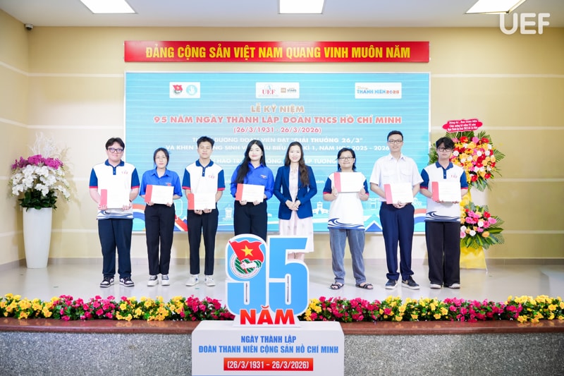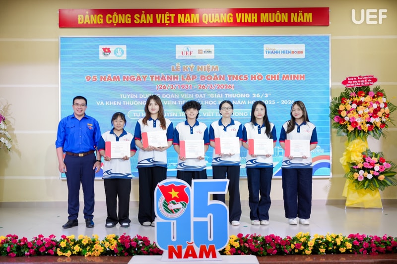 Tháng Ba là dấu mốc thời gian quen thuộc để tuổi trẻ nhìn lại hành trình đã qua, hướng đến những mục tiêu mới cho tương lai. Đây cũng là thời điểm sôi nổi nhiều hoạt động của Tháng Thanh niên, chiều ngày 26/3, UEF đã tổ chức Lễ kết nạp Đảng viên Chi bộ 6 và Lễ kỷ niệm 95 năm thành lập Đoàn TNCS Hồ Chí Minh (26/3/1931 – 26/3/2026), tạo nên dấu ấn ý nghĩa trong công tác giáo dục chính trị, tư tưởng và phát triển toàn diện sinh viên Nhà trường.