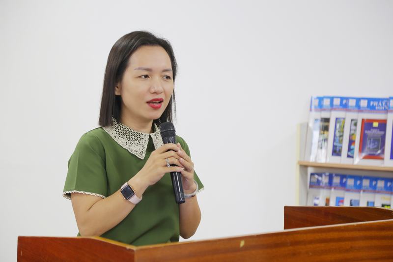 Bà Nguyễn Thị Lan Hương – Giám đốc Hành chính - nhân sự Tập đoàn Tân Á Đại Thành động viên các bạn sinh viên tại buổi lễ