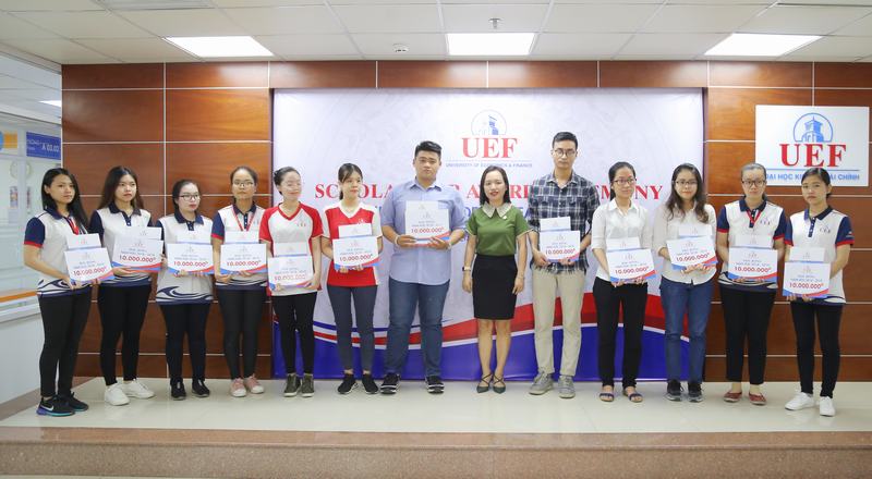 Trong dịp Lễ khai giảng năm học 2018 – 2019 vừa qua, UEF đã trao tặng 1.453 suất học bổng cho Tân sinh viên đạt kết quả xuất sắc trong kỳ tuyển sinh 2018. Trong đó có 26 sinh viên nhận được học bổng 100% (trị giá khoảng 60 triệu đồng/suất), 457 sinh viên nhận học bổng 50% (trị giá khoảng 30 triệu đồng/suất) và 970 sinh viên nhận học bổng 25% (trị giá khoảng 15 triệu đồng/suất).