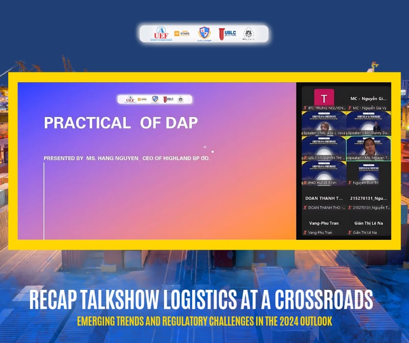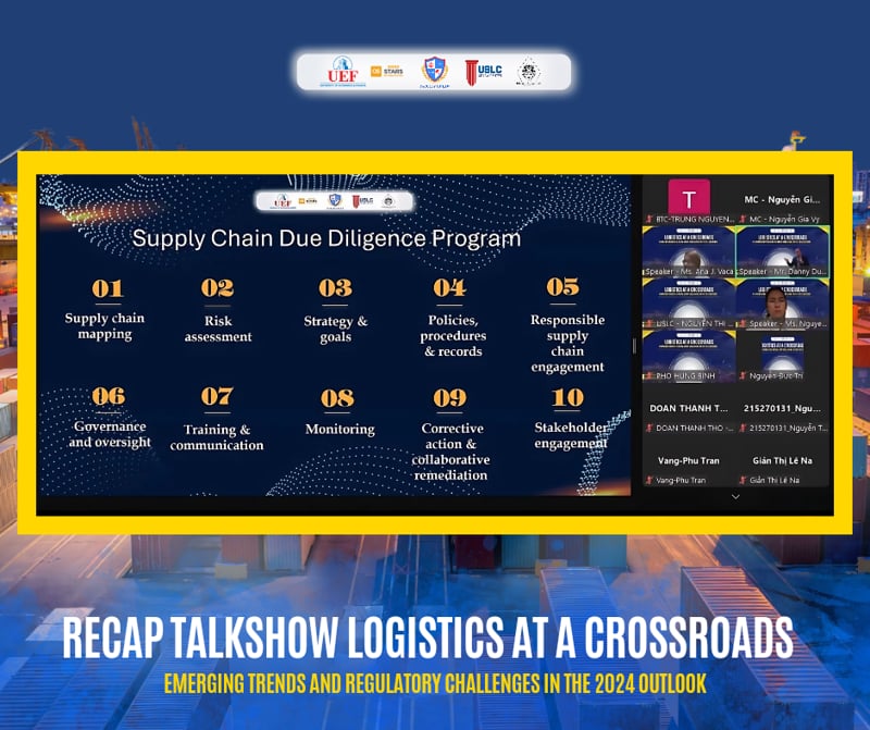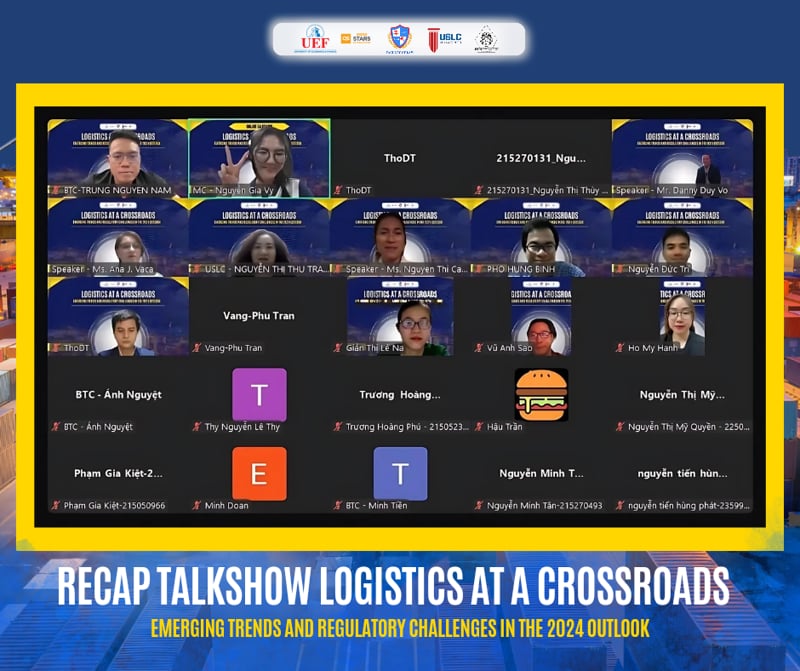 Với mong muốn giúp các bạn sinh viên nắm được bức tranh toàn cảnh về ngành học đầy tiềm năng này, vào ngày 3/8 vừa qua, Trung tâm Pháp luật Hoa Kỳ (USLC) thuộc Khoa Luật UEF đã phối hợp với Câu lạc bộ Pháp luật UEF (ILC) tổ chức buổi talkshow “Logistics talkshow at a crossroads: Emerging trends and regulatory challenges in the 2024 outlook”.
