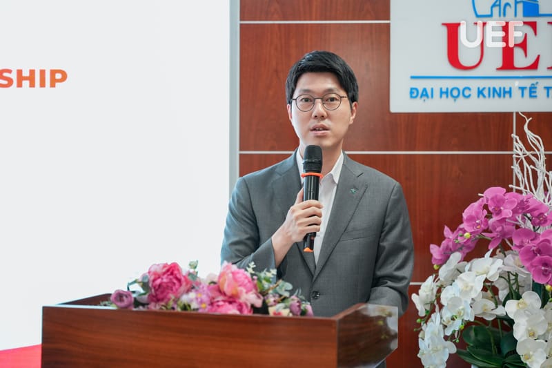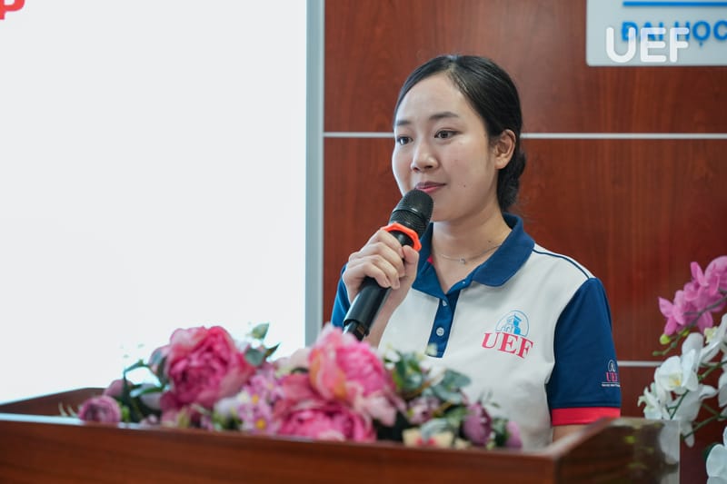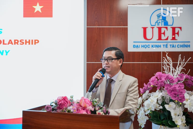 Phát biểu tại buổi trao học bổng, TS. Nhan Cẩm Trí - Phó Hiệu trưởng Nhà trường đã bày tỏ sự cảm kích đối với Ngân hàng KEB Hana khi trao học bổng cho sinh viên UEF. Đây là động lực giúp các bạn tiếp tục học tập, phát triển bản thân. Nhận được nguồn trợ lực từ doanh nghiệp, các bạn sinh viên với lòng biết ơn sẽ tiếp tục trau dồi, rèn luyện và vươn xa trên hành trình chinh phục tri thức.