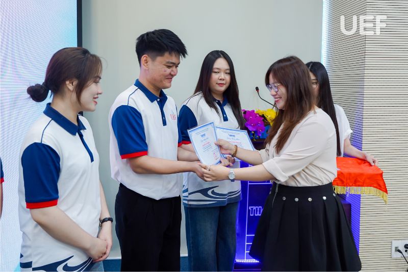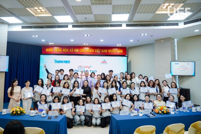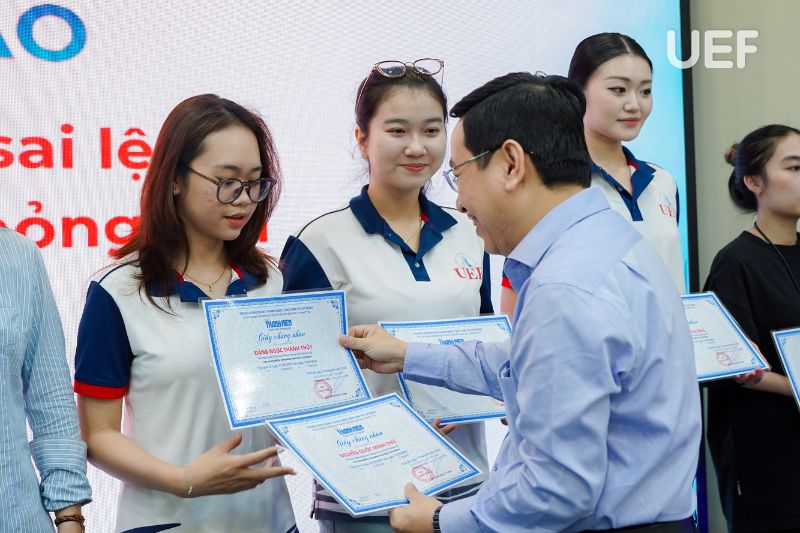 Chiều ngày 17/4, chương trình bế giảng khóa học thực tế dành cho sinh viên Khoa Quan hệ công chúng và Truyền thông tại Báo Thanh Niên đã diễn ra, khép lại hành trình ba tuần học tập, trải nghiệm đầy giá trị với hai học phần trọng tâm: “Tin giả và Thông tin sai lệch”, “Phỏng vấn và trả lời phỏng vấn”. Tại đây, các UEFers đã được trao chứng chỉ hoàn thành khóa học. Đây không chỉ là sự ghi nhận cho nỗ lực học tập mà còn là dấu mốc quan trọng trên hành trình phát triển nghề nghiệp trong tương lai.