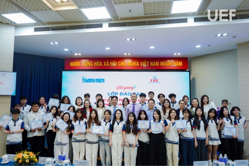 Sinh viên UEF nhận chứng chỉ hoàn thành khóa học thực tế tại Báo Thanh Niên sau hành trình học tập và trải nghiệm