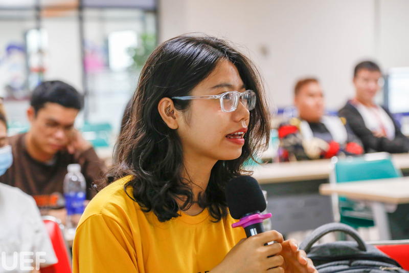 Diễn giả vừa chia sẻ vừa nhiệt tình giải đáp thắc mắc của sinh viên