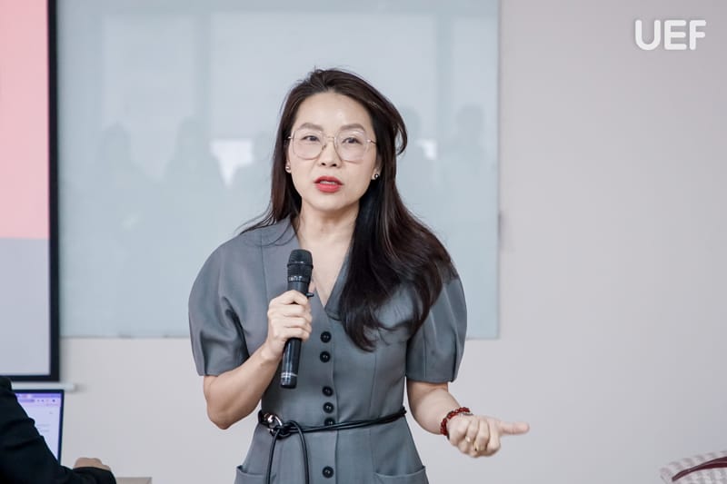 Trong đó, chị Quỳnh Thư mang đến những case-study thực tế trong tổ chức sự kiện và truyền thông, giúp sinh viên hiểu rõ quy trình từ nghiên cứu, lên ý tưởng đến vận hành chương trình. Diễn giả cũng phân tích những tiểu tiết và yếu tố quan trọng cần xem xét như bối cảnh địa lý, chính trị, xã hội,… vì có thể tác động trực tiếp đến thông điệp và hiệu quả của một sự kiện truyền thông.