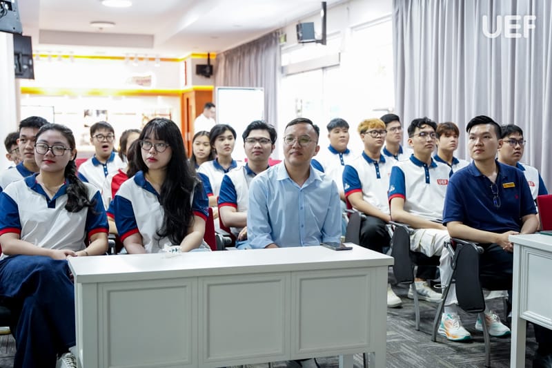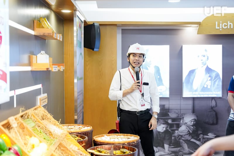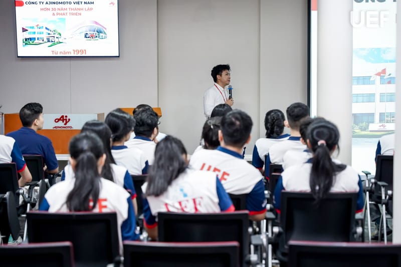 Kết thúc chuỗi hoạt động tham quan, UEFers có buổi giao lưu trực tiếp với đại diện Ajinomoto Việt Nam. Tại đây, sinh viên được đặt câu hỏi và lắng nghe chia sẻ về: môi trường làm việc tại Ajinomoto; văn hóa doanh nghiệp Nhật Bản; quy trình tuyển dụng; cơ hội nghề nghiệp; chế độ phúc lợi và chính sách nhân sự. Phần giao lưu diễn ra sôi nổi với nhiều câu hỏi liên quan đến định hướng nghề nghiệp, kỹ năng cần thiết khi làm việc trong công ty Nhật, cũng như kỳ vọng của doanh nghiệp đối với nguồn nhân lực trẻ. Đây là những thông tin quan trọng giúp sinh viên chuẩn bị hành trang vững chắc cho tương lai, đặc biệt là những bạn mong muốn gia nhập các tập đoàn Nhật Bản tại Việt Nam.
