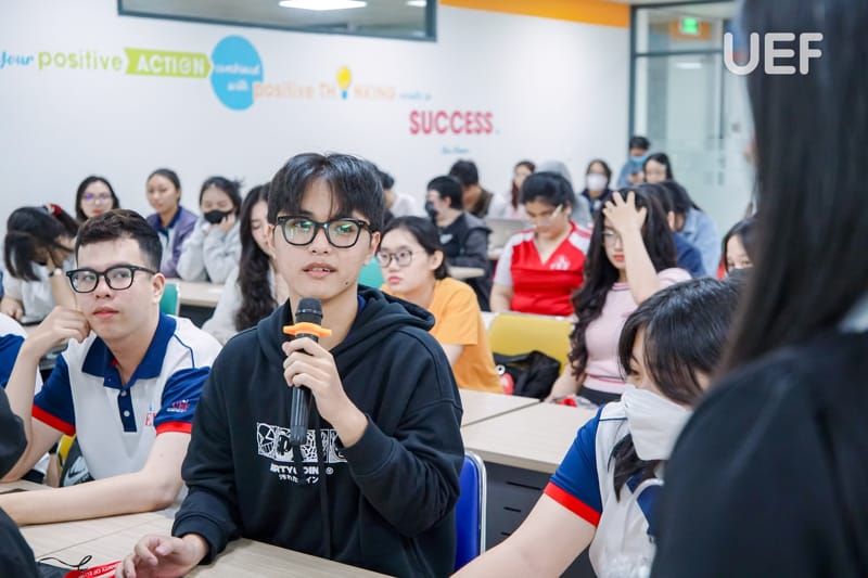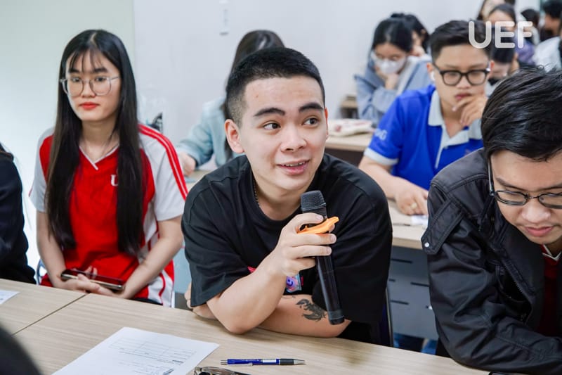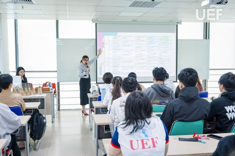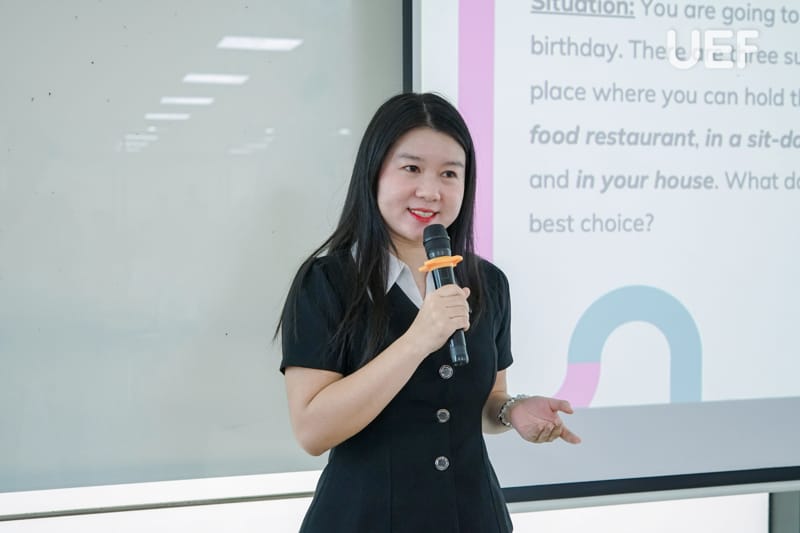 Hai giảng viên Khoa Tiếng Anh chia sẻ nhiều thông tin bổ ích cho UEFers tại English Workshop 6