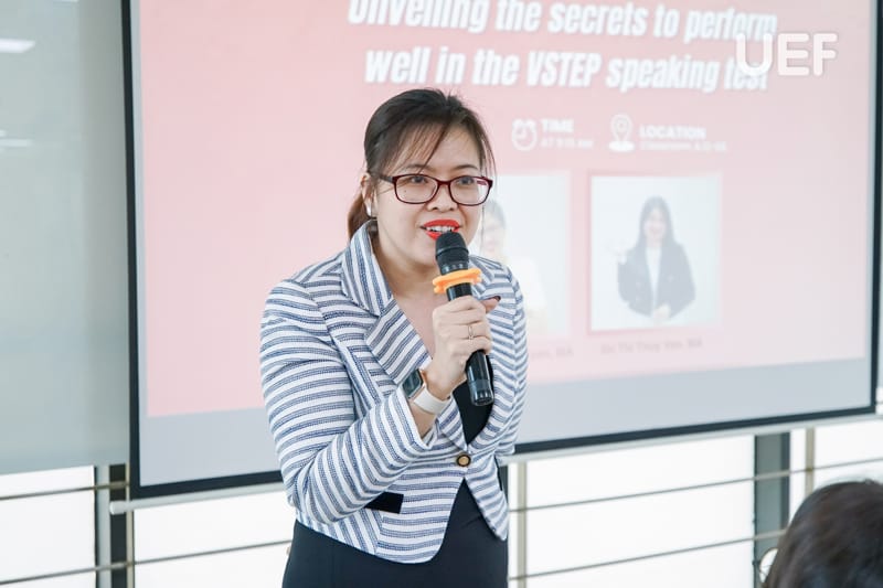 Tiếp nối chuỗi hoạt động trang bị kiến thức và kỹ năng tiếng Anh cho sinh viên, sáng ngày 11/12, Khoa Tiếng Anh đã tổ chức English Workshop 6 có chủ đề “Unveiling the secrets to perform well in the VSTEP speaking test”. Tại đây, các bạn sinh viên được bổ sung nhiều kỹ thuật để chinh phục phần Speaking trong đề thi VSTEP.