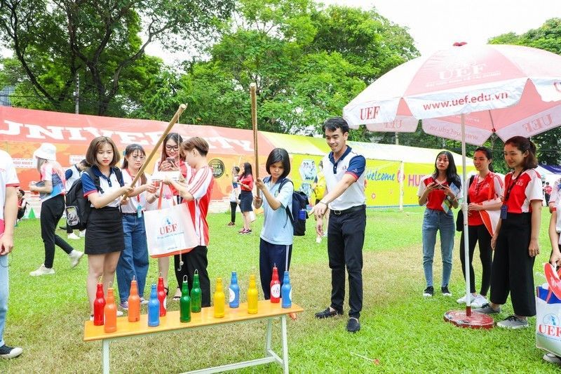 Ngoài chương trình đào tạo, UEF luôn chú trọng phát triển, đẩy mạnh các hoạt động, phong trào trong sinh viên. Điều này các bạn học sinh sẽ được trải nghiệm thực tế qua việc tiếp xúc cùng các anh chị sinh viên UEF và tham gia các trò chơi do chính sinh viên trường tổ chức để dành lấy những phần quà siêu dễ thương.