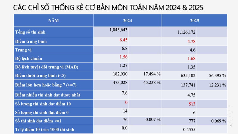 Phổ điểm môn Toán thi tốt nghiệp THPT 2025 như sau: