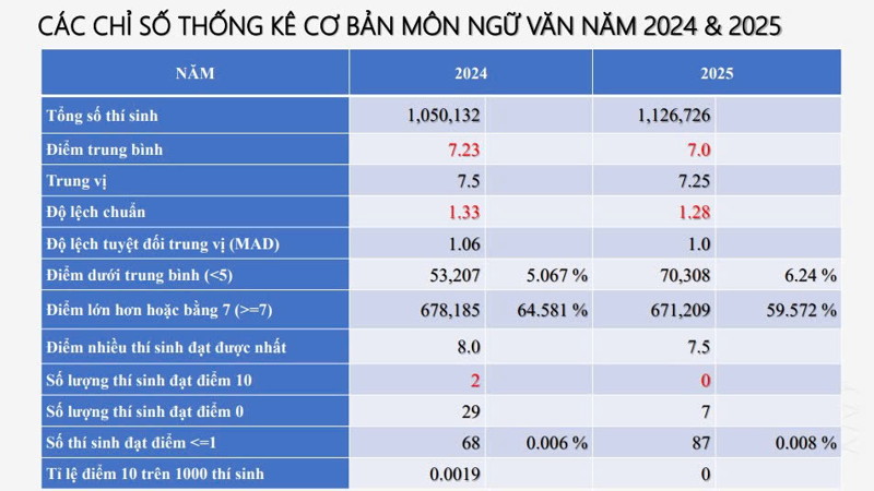 Phổ điểm môn Ngữ văn thi tốt nghiệp THPT 2025 như sau: