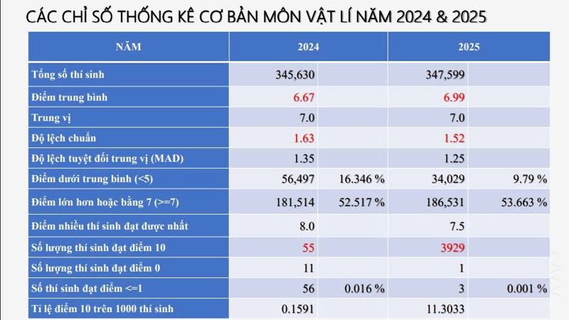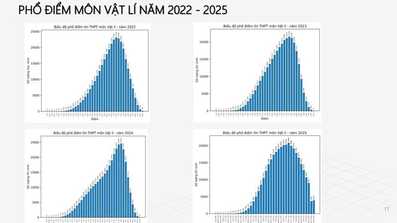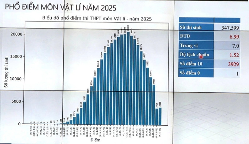 Phổ điểm môn Vật lý thi tốt nghiệp THPT 2025 như sau: