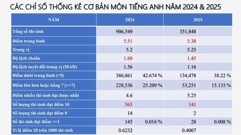 Phổ điểm môn Tiếng Anh thi tốt nghiệp THPT 2025 như sau:
