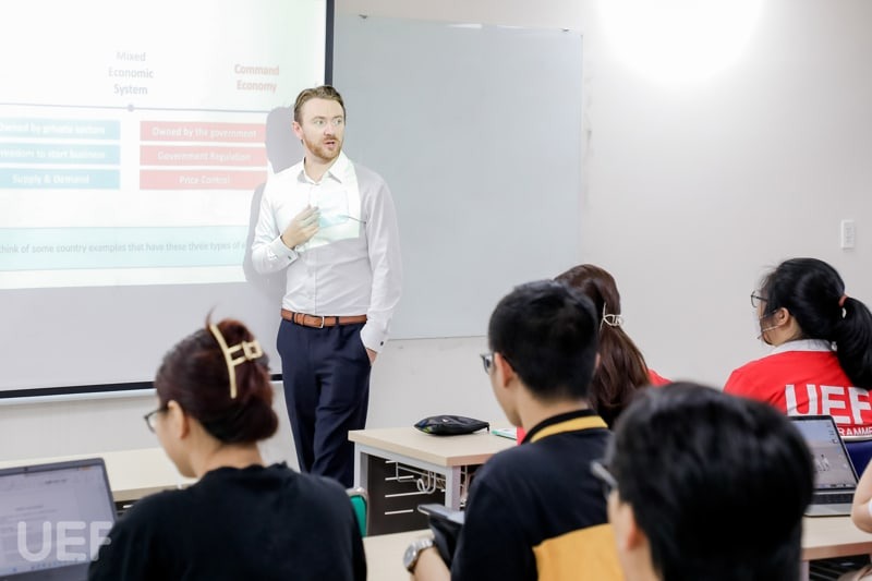 Hiện nay, Nhà trường cũng đang tích cực phát triển các chương trình đào tạo từ song ngữ với 50% thời lượng học bằng tiếng Anh đến chương trình Tài năng 100% tiếng Anh. Việc học tốt ngoại ngữ sẽ là nền tảng giúp UEFers nắm được kiến thức chuyên ngành một cách chủ động, thuận lợi, tăng cường tương tác với các giảng viên bản ngữ.