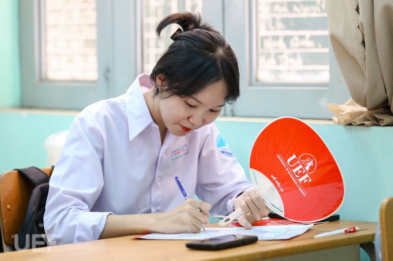 Cùng với nhiều bạn bè khác, bạn Nguyễn Đỗ Châu Thư đã đăng ký xét tuyển học bạ trực tiếp vào UEF ngay tại chương trình. Châu Thư xét tuyển theo hình thức 3 học kỳ. Bạn cho biết đã tìm hiểu thông tin về UEF từ trước và chương trình hôm nay đã giúp bạn hiểu rõ về các ngành học xu hướng. Bạn cũng sẽ tiếp tục tìm hiểu thêm để có sự lựa chọn phù hợp nhất với bản thân trước khi đưa ra quyết định cuối cùng.