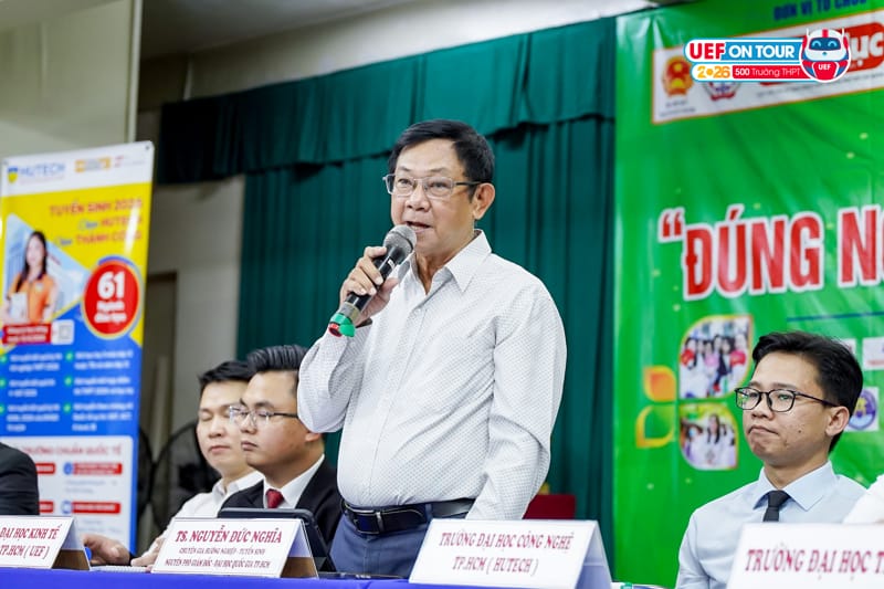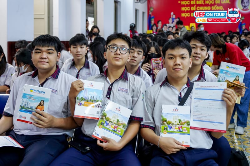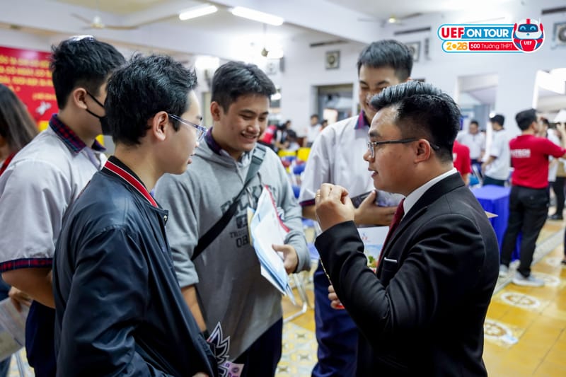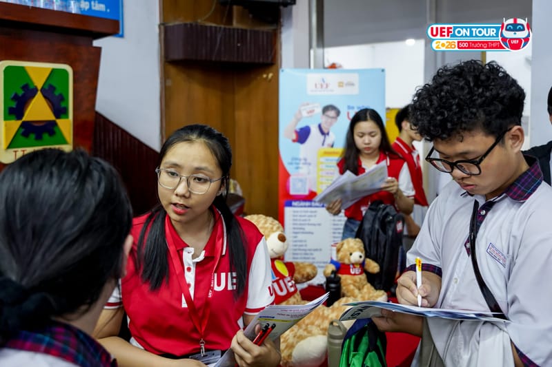 Tham gia chương trình có Ban tư vấn đến từ UEF cùng nhiều trường đại học tại TP.HCM, mang đến cho học sinh cái nhìn toàn diện về lựa chọn ngành nghề, phương thức tuyển sinh và định hướng học tập phù hợp với năng lực, sở thích cá nhân.