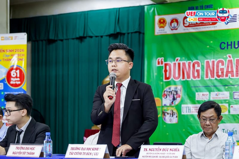 Trong phần tư vấn của UEF, ThS. Nguyễn Nho Đại - Phó Ban Tuyển sinh đã trực tiếp giải đáp nhiều câu hỏi của học sinh xoay quanh phương thức tuyển sinh, chương trình đào tạo và chính sách học bổng. Đặc biệt, thông tin về chính sách xét học bổng sớm tại UEF trước ngày 31/5 bằng điểm học bạ 3 môn HKI lớp 12 nhận được sự quan tâm lớn từ các bạn học sinh, bởi đây là cơ hội giúp thí sinh chủ động trúng tuyển sớm, giảm áp lực tài chính và an tâm tập trung cho kỳ thi tốt nghiệp.