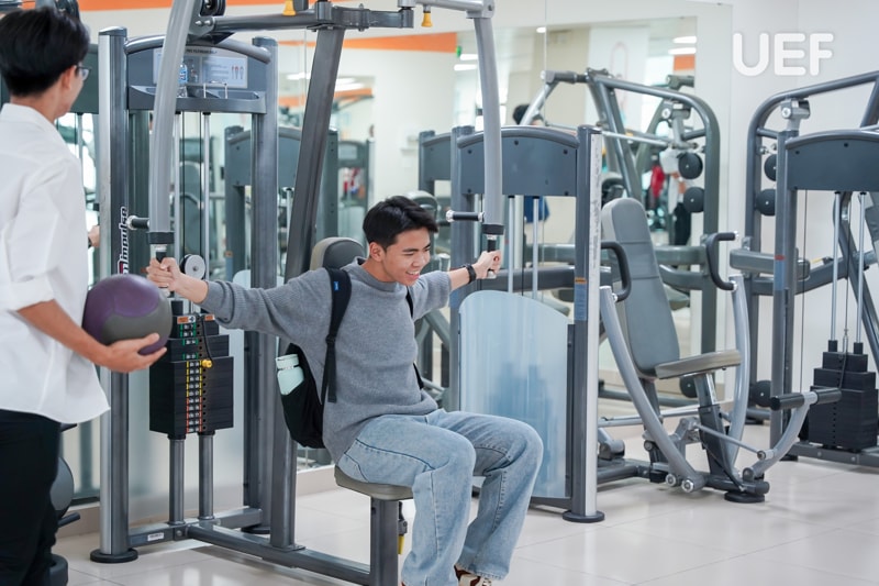 Trong chuyến ghé thăm lần này, học sinh Trường THPT Tân Hồng đã có cơ hội khám phá không gian học tập hiện đại và đầy đủ tiện ích tại khuôn viên 141 - 145 Điện Biên Phủ của UEF. Từ phòng thực hành chuyên ngành du lịch - khách sạn, phòng tin học, studio đến các khu vực phục vụ nhu cầu rèn luyện sức khỏe của sinh viên như Aerobic, Dancesport, Gym, Boxing,... đều tạo ấn tượng với các bạn học sinh, mở ra một cái nhìn mới mẻ, hào hứng về môi trường học tập ở đại học.
