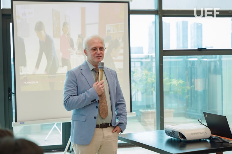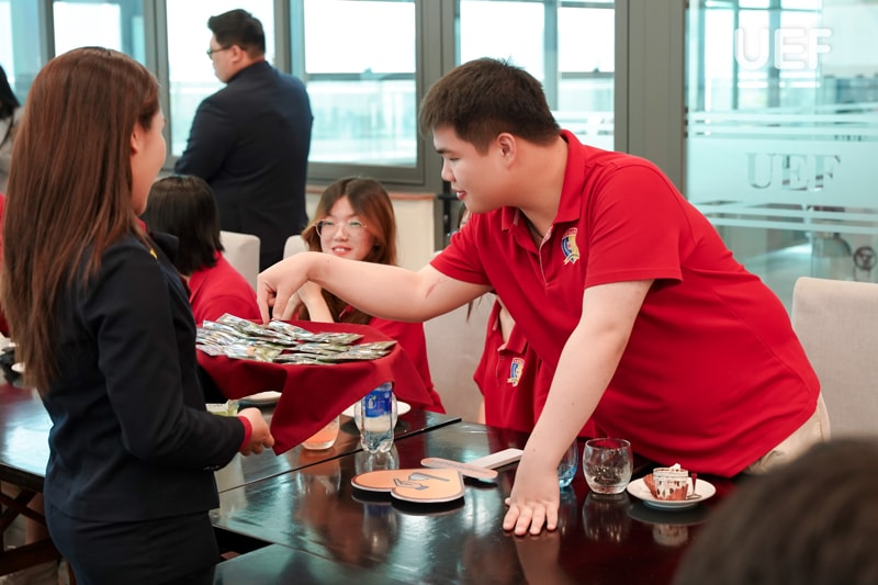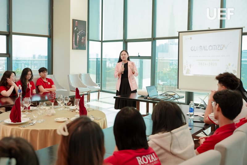Sáng ngày 16/11, Khoa Quản trị du lịch - Khách sạn UEF đã tổ chức chương trình “Trải nghiệm một ngày làm công dân toàn cầu” dành cho các bạn học sinh Trường Song ngữ Quốc tế Hoàng Gia (Royal School). Chương trình không chỉ mở ra cơ hội học hỏi về kỹ năng giao tiếp và văn hóa quốc tế mà còn giúp các bạn trẻ khám phá những ngành nghề giàu tiềm năng, gắn liền với xu thế hội nhập toàn cầu.