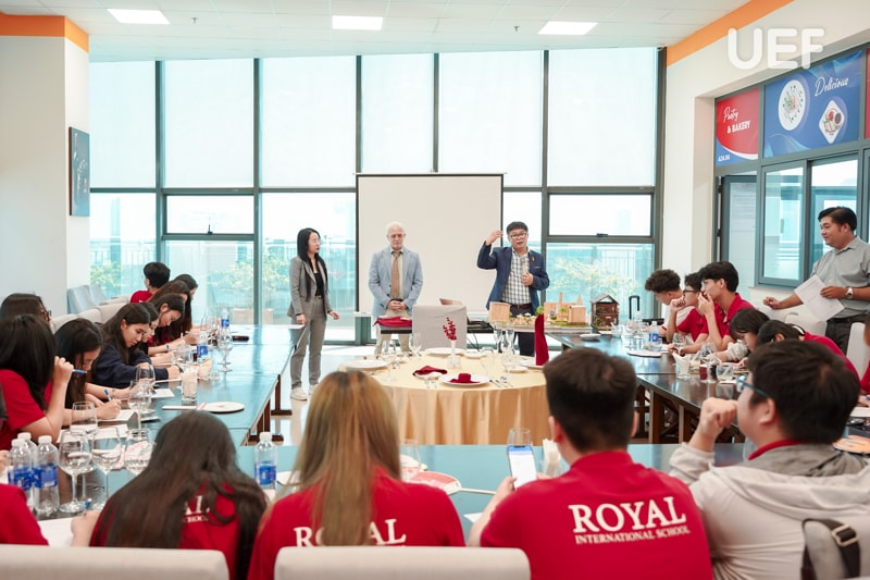 Bên cạnh đó, các bạn học sinh còn được tham gia các hoạt động trải nghiệm thực tế liên quan đến ba ngành đặc thù của Khoa Quản trị du lịch - Khách sạn UEF: Quản trị khách sạn, Quản trị dịch vụ du lịch và lữ hành, Quản trị nhà hàng và dịch vụ ăn uống. Mỗi ngành mang đến một góc nhìn mới mẻ, giúp các bạn nhận thấy được tiềm năng và cơ hội trong các lĩnh vực này. Đặc biệt, qua sự hướng dẫn tận tình của đội ngũ giảng viên, học sinh Royal School đã có cơ hội tiếp xúc với môi trường học tập năng động và hiện đại tại trường.
