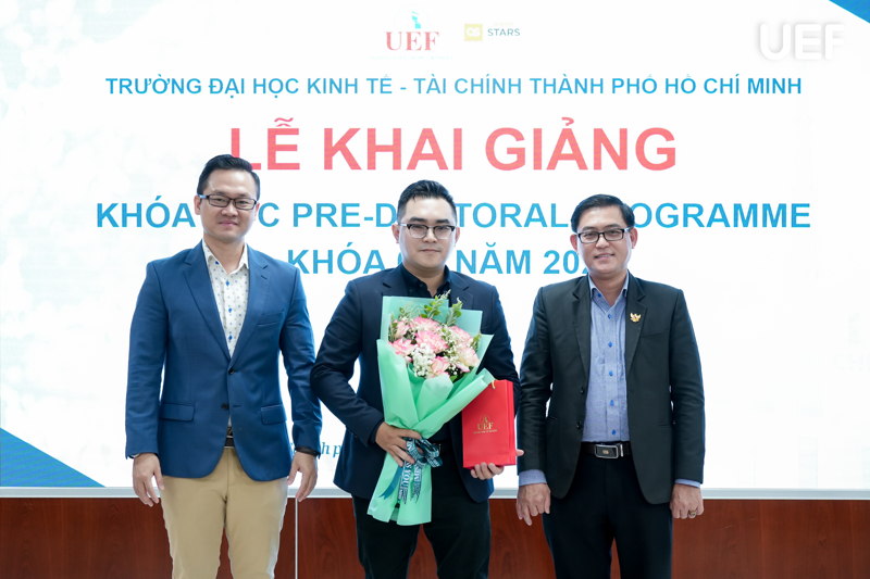 Tham dự buổi lễ có Ban Giám hiệu Nhà trường, đại diện Viện Đào tạo sau đại học, các phòng ban, trung tâm cùng toàn thể học viên khóa học. Phát biểu khai giảng, TS. Ngô Minh Hải - Phó Hiệu trưởng UEF cho biết, chương trình này đã được ấp ủ từ lâu và nay đã hội tụ đủ nguồn lực để triển khai. Thầy nhấn mạnh, khóa học sẽ mang lại cho người học môi trường nghiên cứu cùng các giảng viên uy tín, giàu kinh nghiệm công bố quốc tế, từ đó giúp học viên tự tin và sẵn sàng khi bước vào chương trình tiến sĩ.