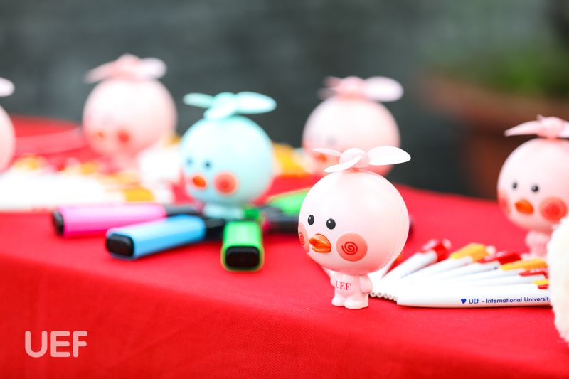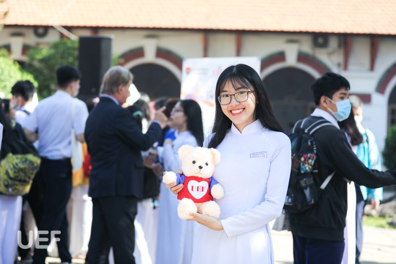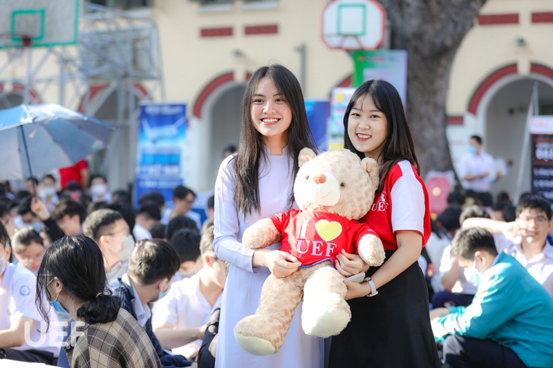 Đặc biệt, món quà thu hút nhất có lẽ là chú gấu bông cực dễ thương trong chiếc áo UEF. Không chỉ xuất hiện trong chương trình tư vấn tuyển sinh, gấu bông UEF còn là người bạn thân thiết đối với các tân sinh viên của Nhà UEF. Đồng thời, sinh viên trường khi tham gia các cuộc thi, hoạt động cũng được tặng món quà thật "xịn" này.