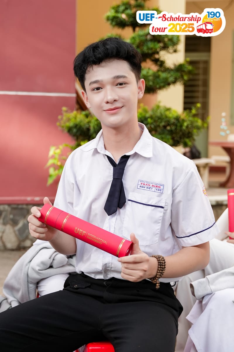 Đạt học bổng 100% khi đăng ký ngành Quan hệ công chúng, Kinh doanh thương mại, Quản trị sự kiện, Luật, bạn Phạm Anh Kiệt - Lớp 12C trường THPT Trấn Biên (Đồng Nai) chia sẻ: “Em chọn đăng ký học bổng sớm để tìm thêm cơ hội cho bản thân và giảm bớt áp lực học tập. Em thấy chính sách này của UEF là một chính sách tuyệt vời và cũng có phần nhân văn khi các cá nhân ưu tú có thành tích tốt trong học tập được hỗ trợ tuyệt đối, được tạo điều kiện cũng như môi trường để có thể tiếp cận với những nền giáo dục một cách tốt nhất”.