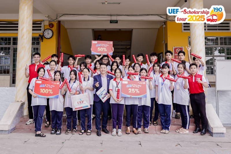 “UEF - Scholarship Tour 2025” khởi đầu tại trường THPT Trấn Biên - Đồng Nai và tiếp tục triển khai ở nhiều điểm trường tại Tiền Giang. Thí sinh đạt học bổng sớm đã đăng ký bằng kết quả học kỳ 1 lớp 12. Đây không chỉ là phần thưởng xứng đáng mà còn là sự ghi nhận cho hành trình nỗ lực không ngừng của các bạn.