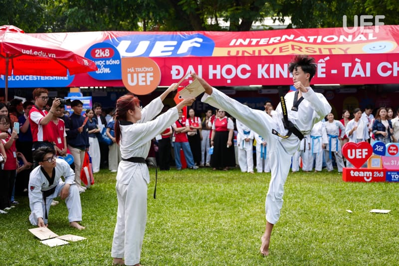 Bên cạnh công tác tư vấn, Nhà UEF đã chuẩn bị nhiều phần quà hấp dẫn mang “dấu ấn” của trường như túi xách, sổ tay, gấu bông, viết,... cũng như khu vực check-in ấn tượng dành cho team 2k8. Tại đây, các bạn hào hứng tham gia nhiều hoạt động giao lưu, trải nghiệm, trò chơi thú vị,...