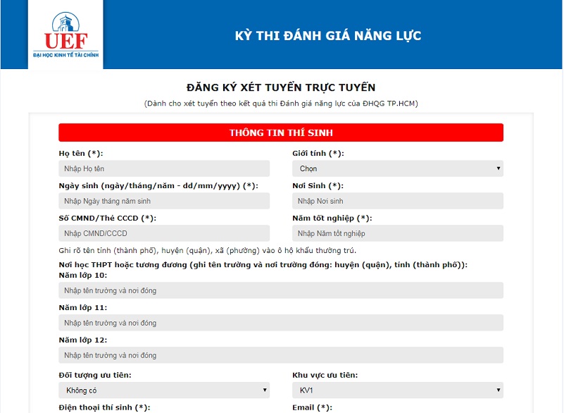 + Bằng phương thức trực tuyến (online) tại địa chỉ https://www.uef.edu.vn/thi-nang-luc;