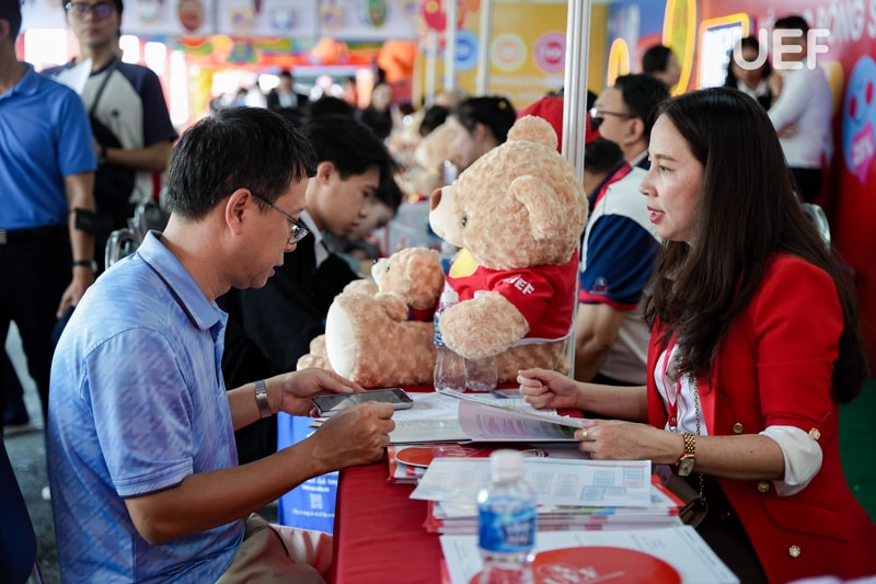 Đến với gian hàng của UEF và nhận được sự tư vấn nhiệt tình, chi tiết về ngành học, học bổng và phương thức xét tuyển, cô Nguyễn Thị Hằng Nga, phụ huynh của bạn Trần Tuệ Anh (THPT Thanh Tuyền, Bình Dương) cho biết: "Tôi thấy chính sách xét học bổng sớm giúp con tôi định hướng sớm, giảm bớt áp lực tài chính và có thêm động lực để cố gắng. Cơ hội nhận học bổng 50% học phí cũng là một minh chứng cho năng lực của con mình trong những năm cấp 3".