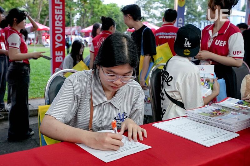 Tại ngày hội, nhiều thí sinh đến từ TP.HCM và các tỉnh lân cận đã tìm hiểu và đăng ký xét học bổng sớm tại UEF. Một điểm chung dễ nhận thấy ở các bạn là mong muốn tận dụng cơ hội này để giảm bớt áp lực trước kỳ thi THPT.