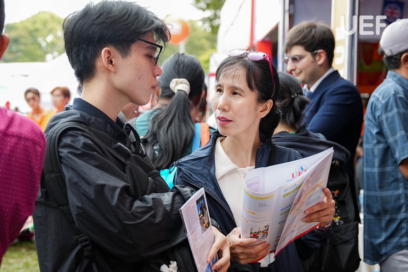 Đồng hành với con em đến gian tư vấn của UEF trong ngày hội, nhiều phụ huynh cũng đánh giá cao chính sách đăng ký học bổng sớm của UEF, xem đây là một bước đệm quan trọng giúp thí sinh có sự chuẩn bị chu đáo trước khi bước vào môi trường đại học. Về phía gia đình cũng có thể sớm lên kế hoạch tài chính phù hợp.