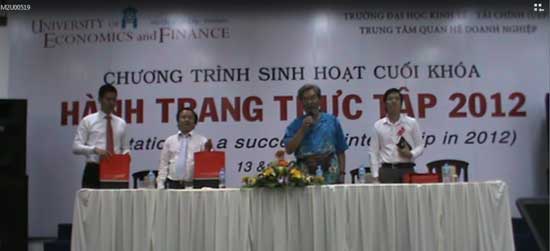 Vào ngày 13 và 14 tháng 2 năm 2012, hội trường Thư viện cơ sở Tham Lương Trường Đại học Kinh tế - Tài chính thành phố Hồ Chí Minh (UEF) tưng bừng chào đón hơn 200 sinh viên năm cuối tham dự chương trình sinh hoạt cuối khóa “Hành trang Thực tập 2012” do Trung tâm Quan hệ Doanh nghiệp (TTQHDN) của trường tổ chức.
